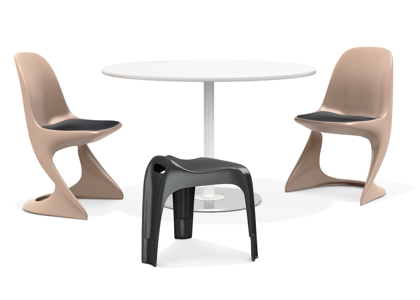 Seine elegant fließende Form macht Ihn zu einen Kunstwerk und doch ist er robust. Casalino ist antistatisch, lässt sich stapeln, abwaschen und trotz jedem Wetter. Seine lichtechten Farben strahlen in der Sonne auch noch nach Jahren. Es gibt ihn als Freischwinger mit Armlehnen, mit Sitzpolster, als Stuhl oder Hocker – und zu allem passen die Casalino-Tische.