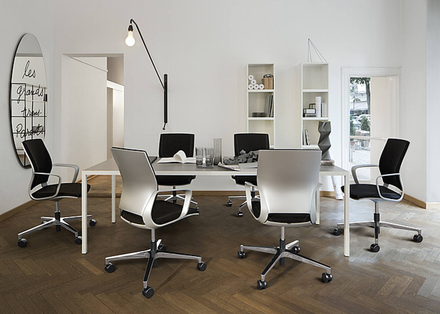 Außergewöhnliche Form und gesunde Bequemlichkeit: Moteo Konferenz-Drehsessel bieten eine perfekte Verbindung. Konsequent und klar stehen fließende Linien und flächige Formen im Einklang mit den ergonomischen Erfordernissen nach optimaler Unterstützung einer zeitgemäßen Besprechungskultur. Moteo sorgt für Mobilität und Dynamik in der Gesprächsrunde. Nach Gebrauch holt ihn die Rückholmechanik in die Tischordnung zurück.