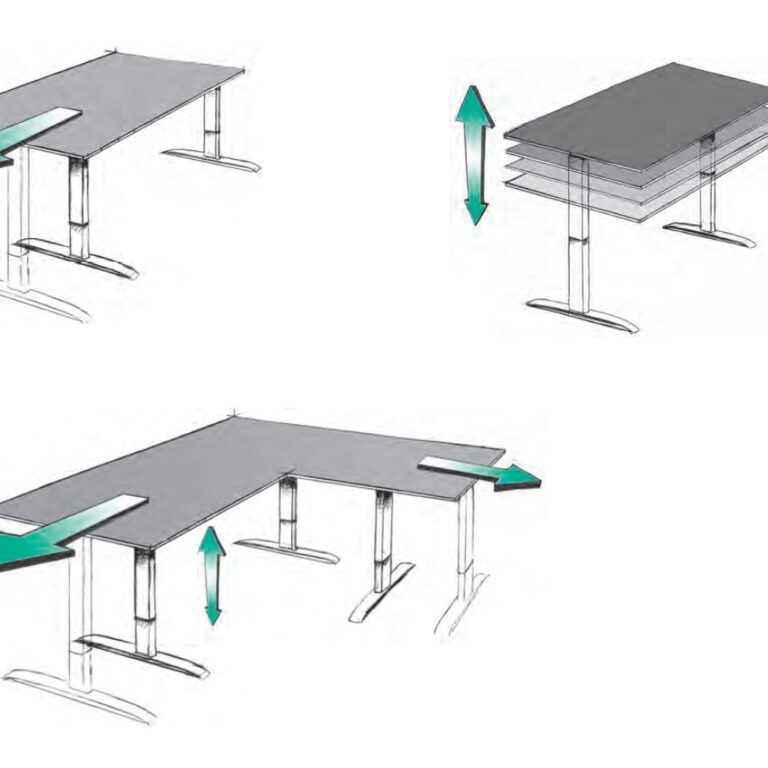 Motorisch- oder per Gaslift- höhenverstellbare Arbeitsplatzlösung